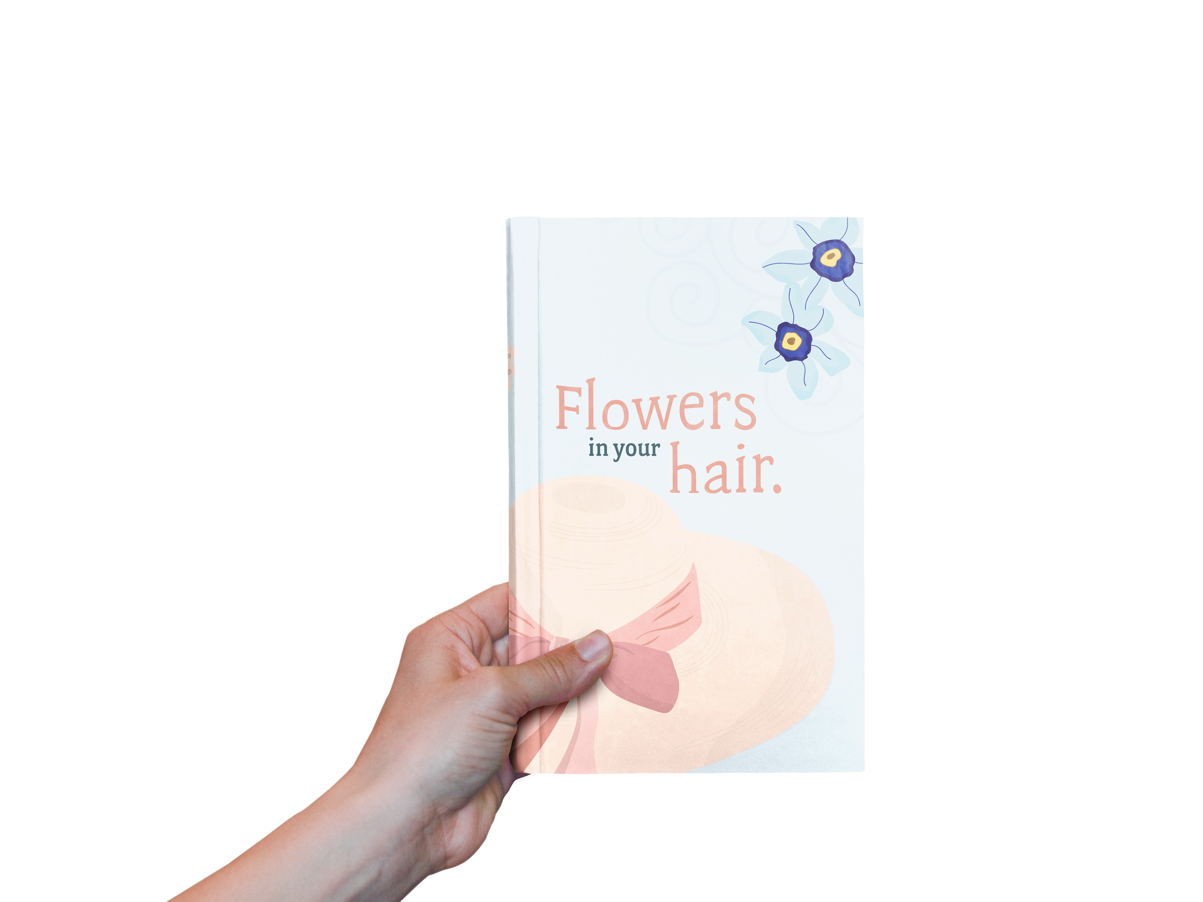 The "Flowers in Your Hair" illustrated "coffee table" book was created to explore different aspects of digital illustration. I illustrated the cover of the book and the inside spreads with the pairing of lyrics from The Lumineers song "Flowers in Your Hair." Each page turn takes you on a whimsical stroll through a cottagecore aesthetic. This book was printed and is used as a conversation piece within my home.